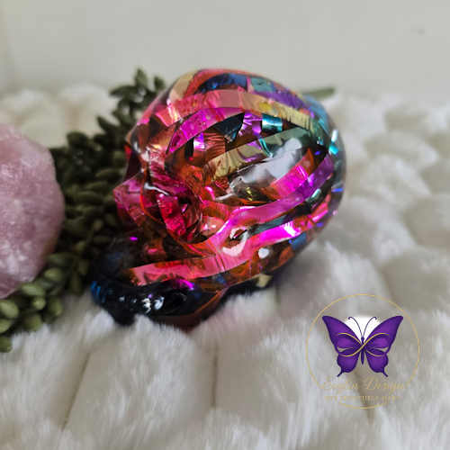 Deze draak, verwerkt in epoxy met potpourri en amethist steentjes, is een krachtig en uniek decoratief object met een warme en beschermende uitstraling 🦋💜